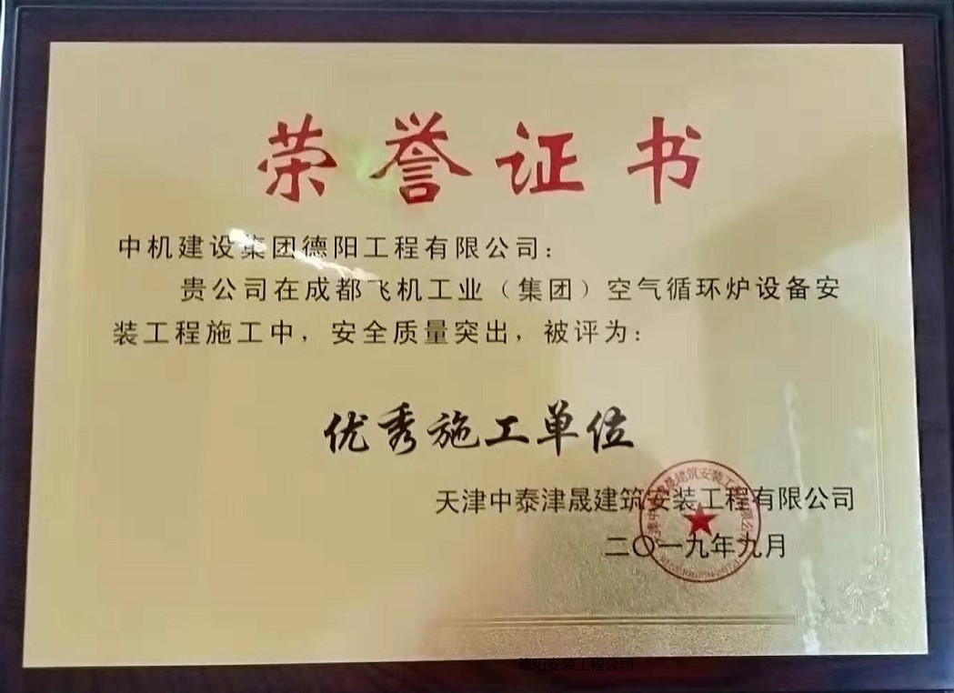 2018年1月16日,公司市場部經(jīng)營獲得“成都飛機(jī)工業(yè)(集團(tuán))有限責(zé)任公司空氣循環(huán)爐設(shè)備制作和安裝調(diào)試清包項目”(以下簡稱成飛項目),通過精心組織人員、優(yōu)化施工方案、調(diào)配成德資源,保質(zhì)保量按期于2018年6月底安全順利完成施工任務(wù)并與相關(guān)專業(yè)配合聯(lián)動調(diào)試成功,8月份順利通過行業(yè)驗收,經(jīng)過一年質(zhì)保期運行平穩(wěn)正常,獲得業(yè)主和總包方一致認(rèn)可,授予我公司“優(yōu)秀施工單位”稱號。